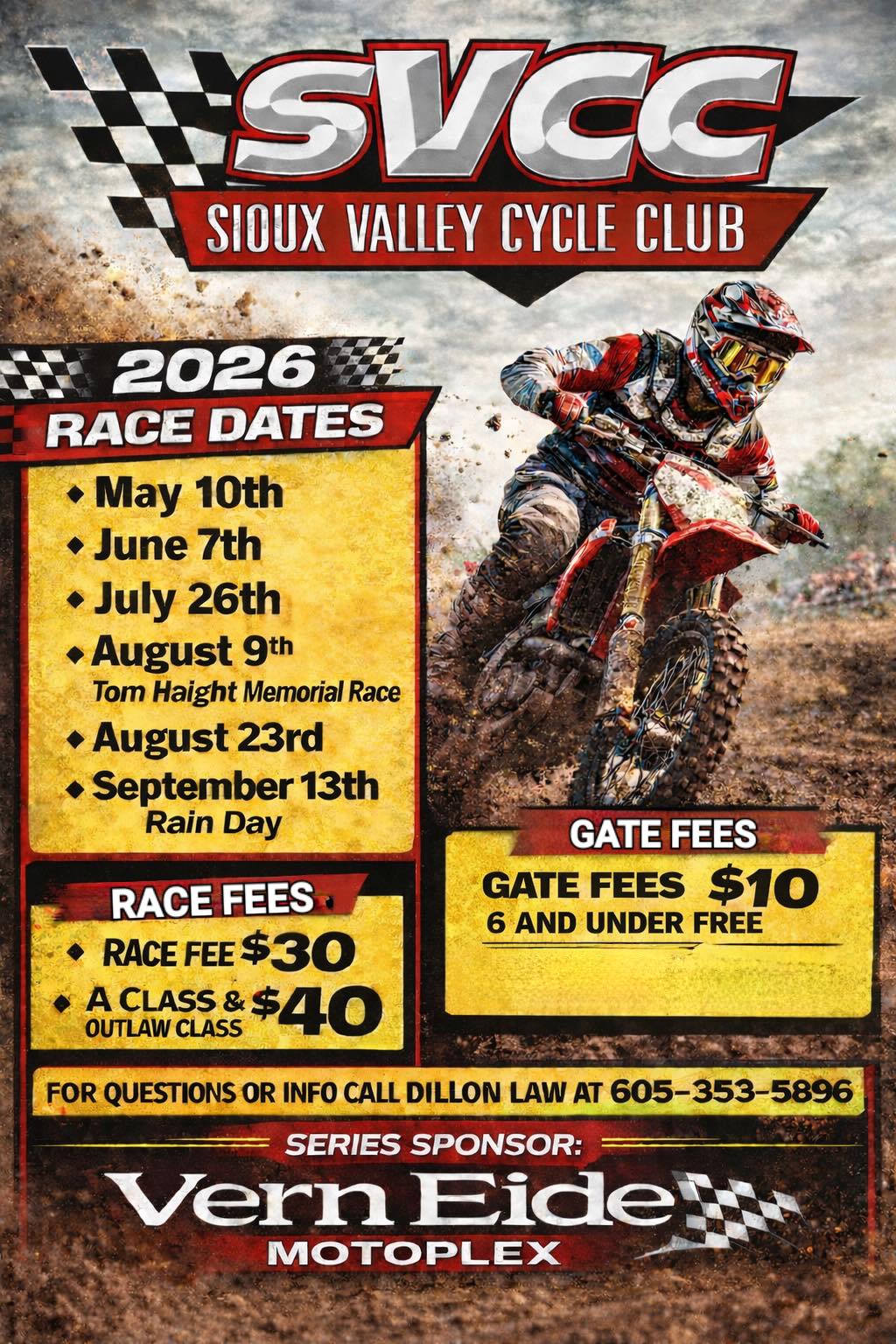 $10 admission Held at the Sioux Valley Cycle Club track 605-360-7778