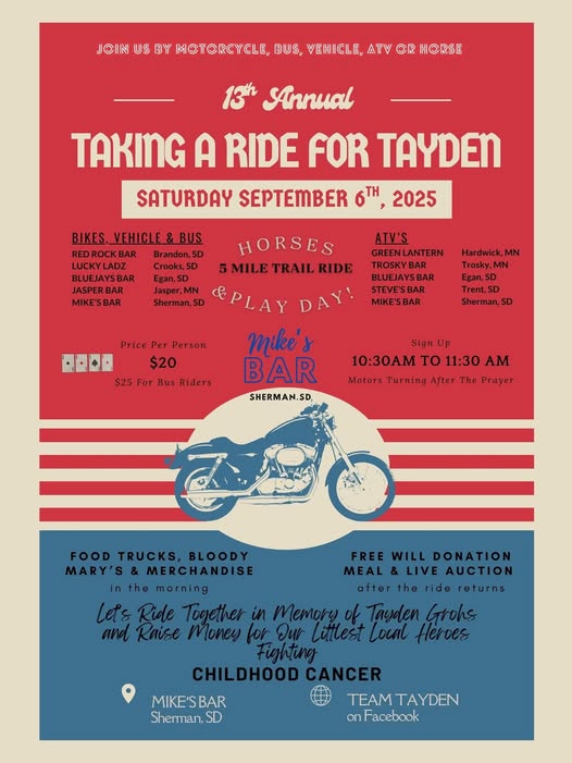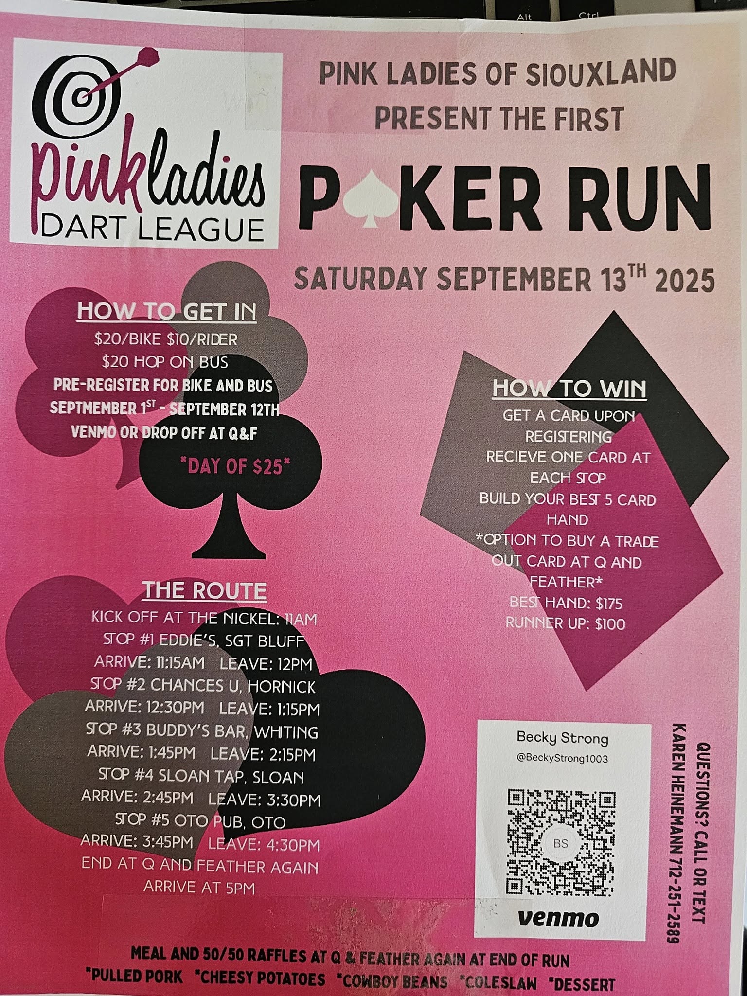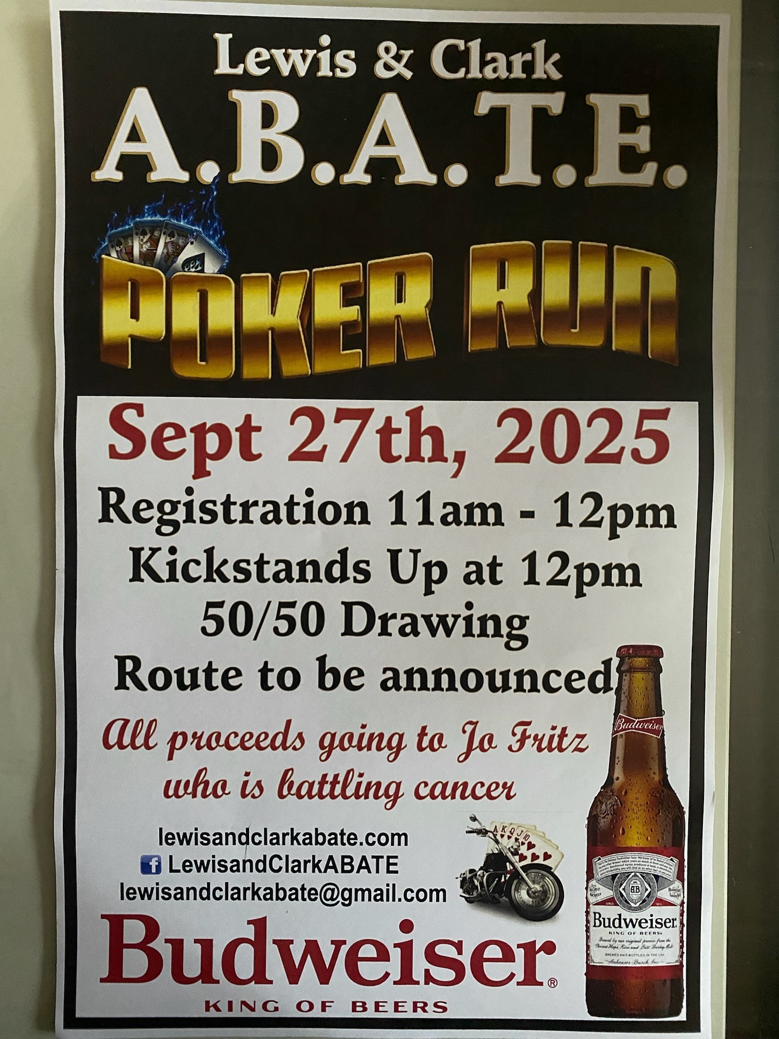 $20 sign-up 9:30 - 11 AM at the American Legion, KSU at 11:30 AM